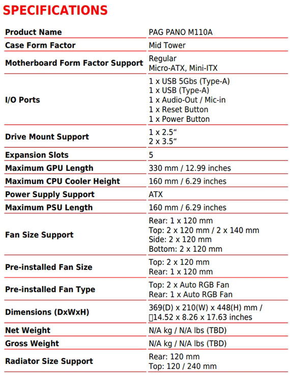 MSI微星 PAG PANO M110A 黑色 全景玻璃透側 M-ATX機殼