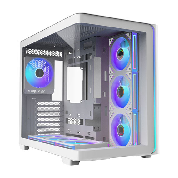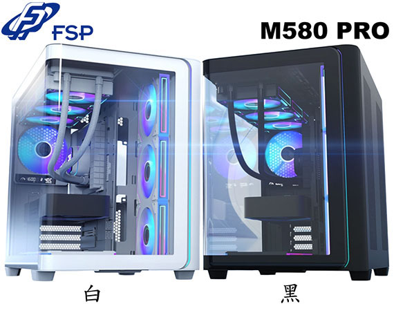 FSP全漢 M580 PRO M580P-WA 白色 全景玻璃透側 ATX機殼 支援背插式主機板