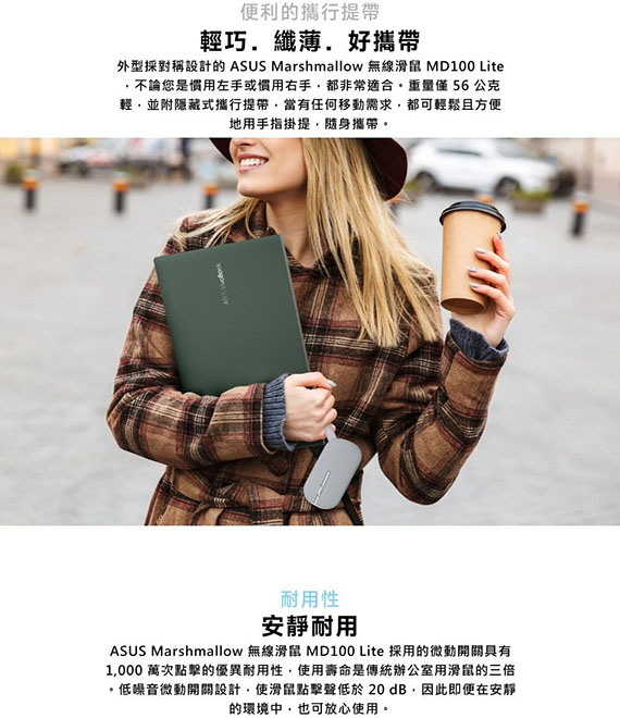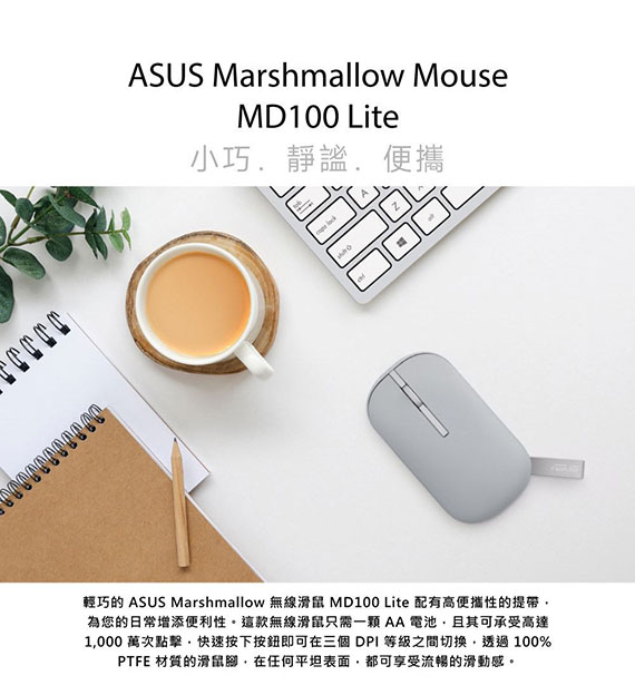 ASUS華碩 Marshmallow MD100 Lite 經典灰 無線滑鼠 90XB07A0-BMU0F0