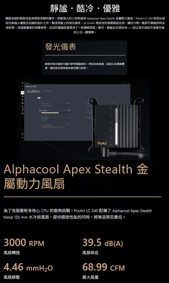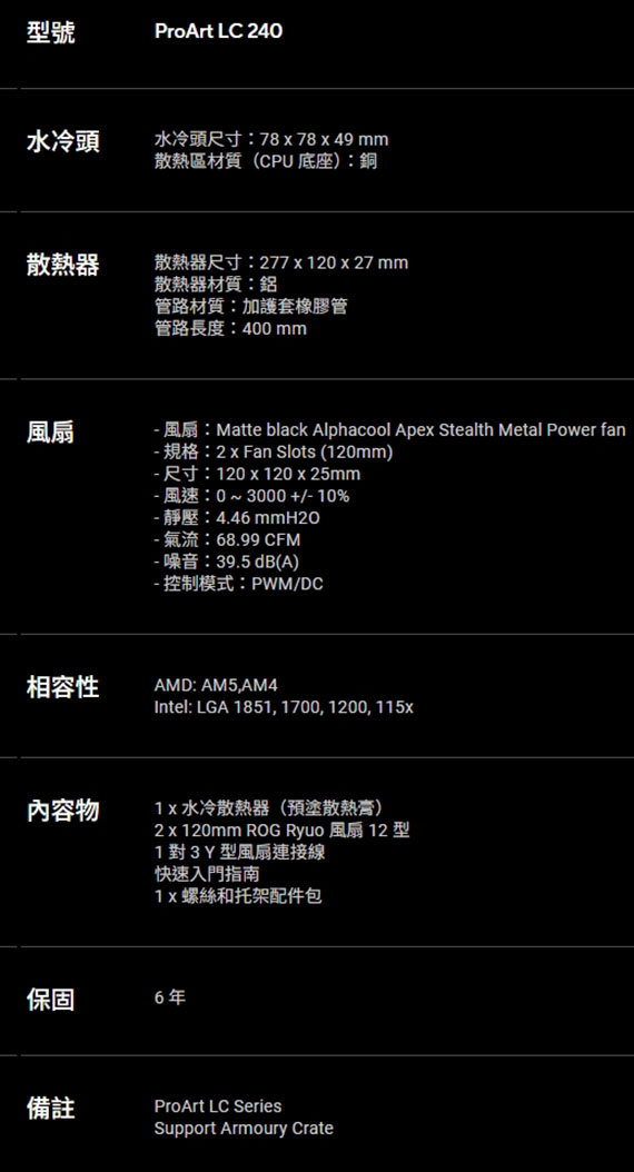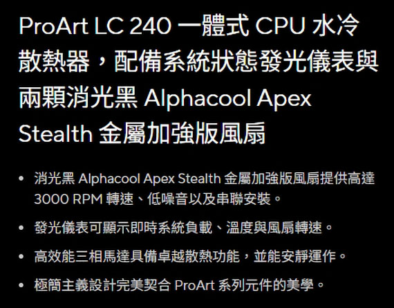 ASUS華碩 ProArt LC 240 一體式CPU 水冷散熱器 90RC01K0-M0TAY0