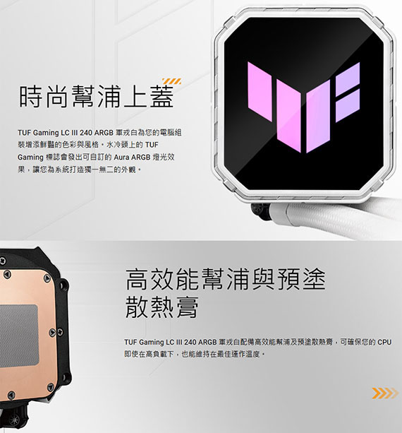 ASUS華碩 TUF GAMING LC III 240 ARGB WHT 軍戎白 一體式CPU 水冷散熱器 90RC01J2-B0TAY0