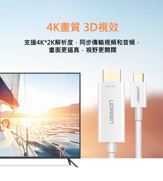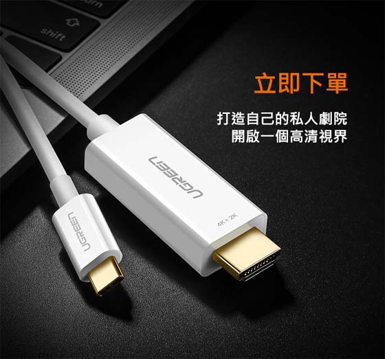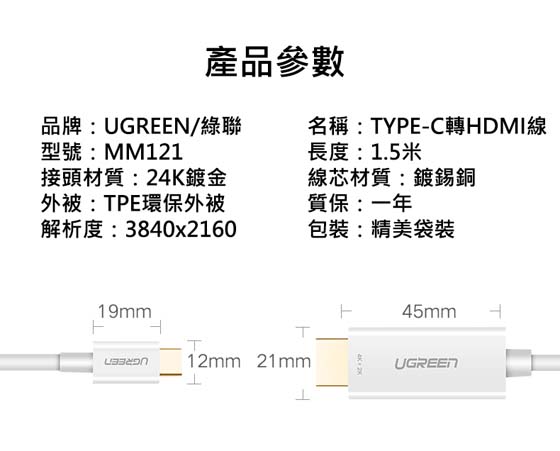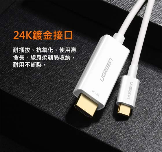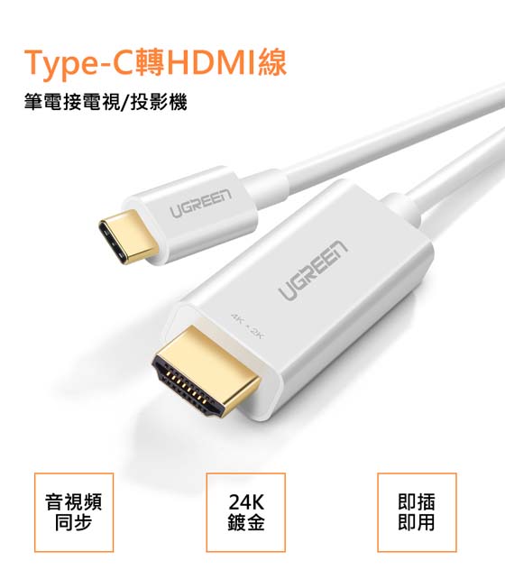 UGREEN綠聯 30841 白色 USB Type-C公-HDMI A公 1.5M