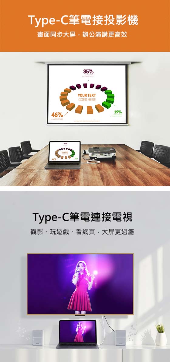 USB Type-C公<-->HDMI A公19pin,線長:1.5公尺(1.5米)/150公分(150cm),24K鍍金接頭,多重屏蔽穩定傳輸,筆電接電視/投影機,4K畫質音視頻同步