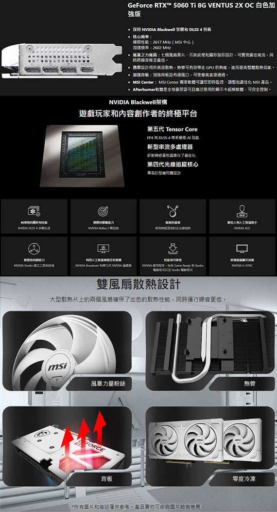 GeForce RTX™ 5060 Ti 8G VENTUS 2X OC 白色加強版 |