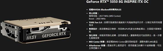 MSI微星 GeForce RTX 5050 8G INSPIRE ITX OC PCI-E 顯示卡
