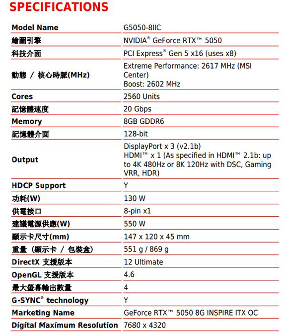 GeForce RTX 5050 8G INSPIRE ITX OC |