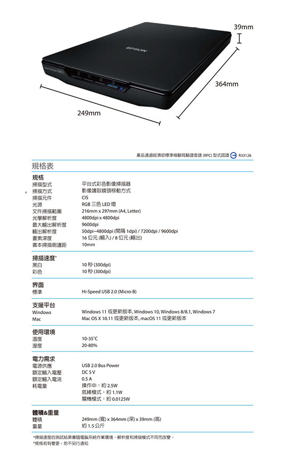 EPSON愛普生 Perfection V39II 書本掃描器 平台式掃描器