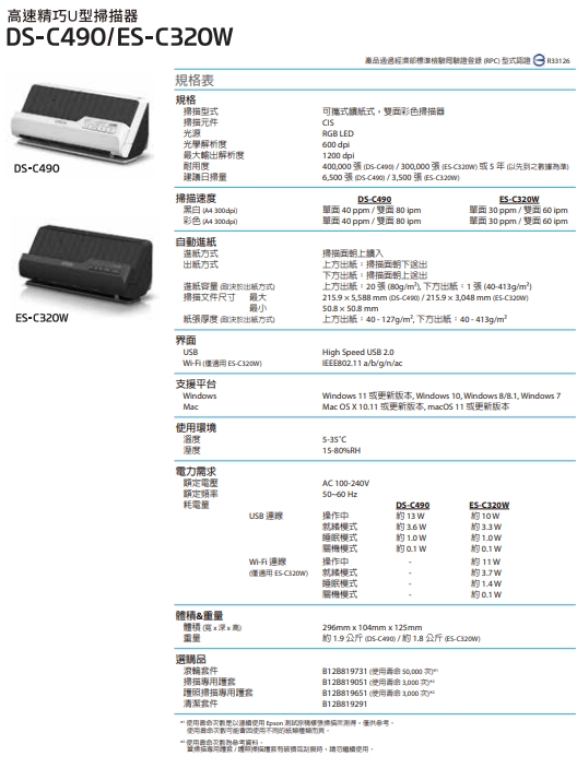 EPSON愛普生 DS-C490 饋紙式掃描器