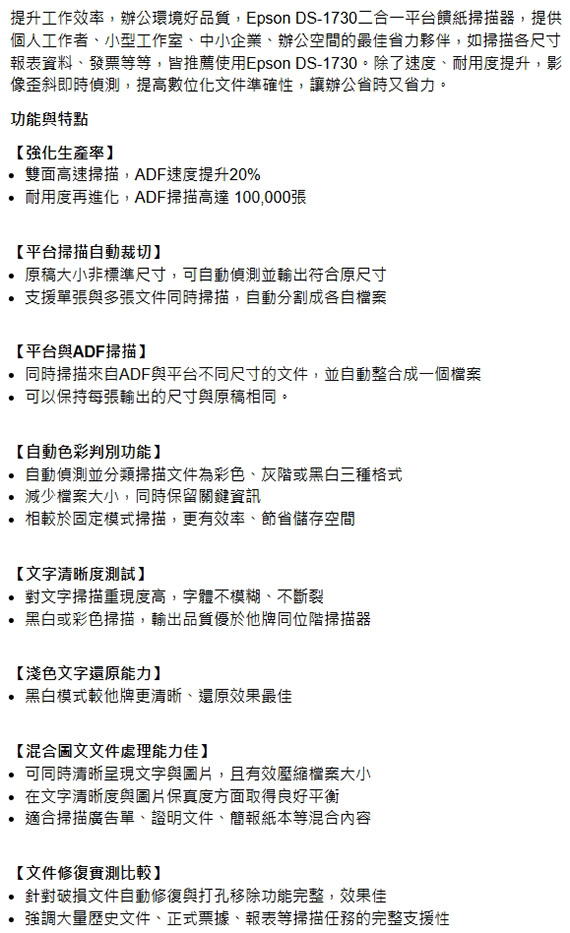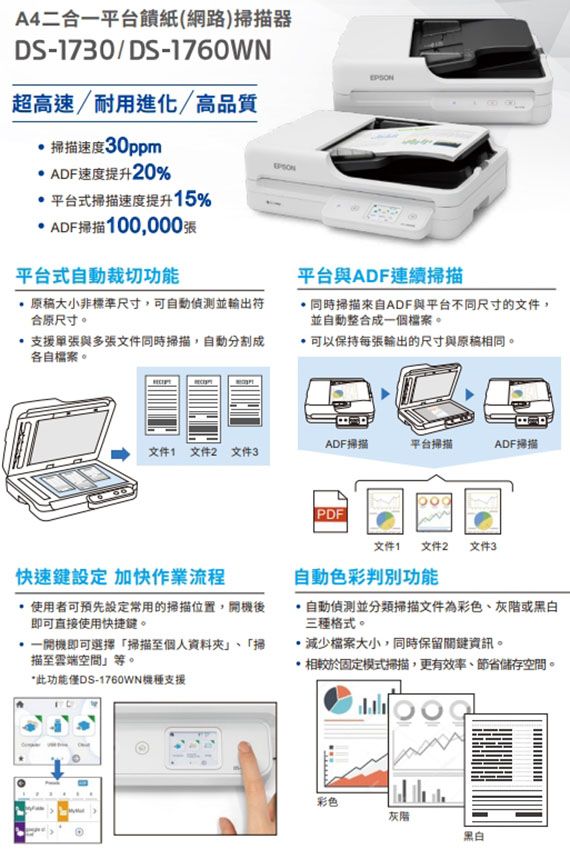 EPSON愛普生 DS-1730 平台+饋紙掃描器/A4