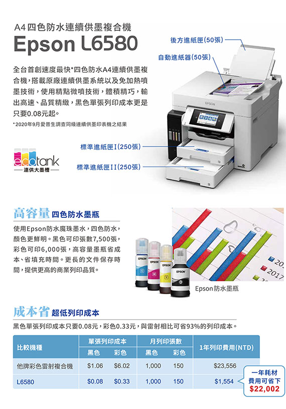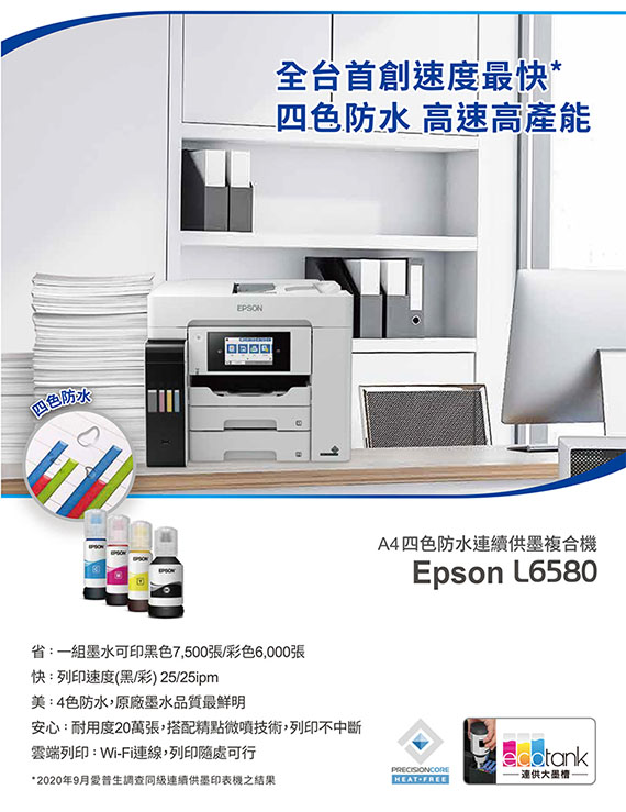 EPSON愛普生 L6580 四色防水高速連續供墨複合機