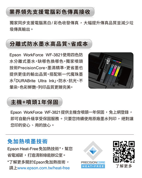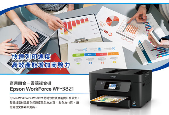 EPSON愛普生 WorkForce WF-3821 四合一彩色商用噴墨複合機(產品贈品活動訊息,請至官網查詢)