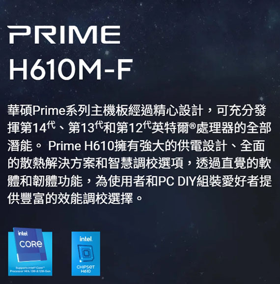 ASUS華碩 PRIME H610M-F (m-ATX/DDR5*2/1H/M.2*1/Realtek 1G)