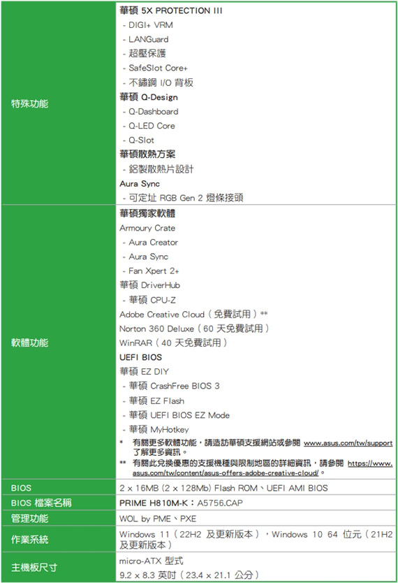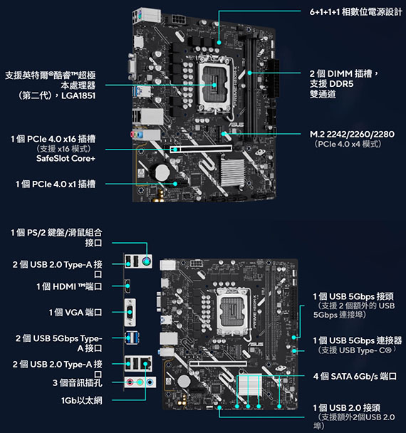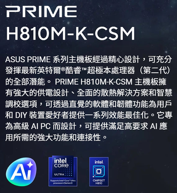 ASUS華碩 PRIME H810M-K-CSM (m-ATX/DDR5*2/1A1/h/M.2*1/Realtek 1G/6+1+1+1相)