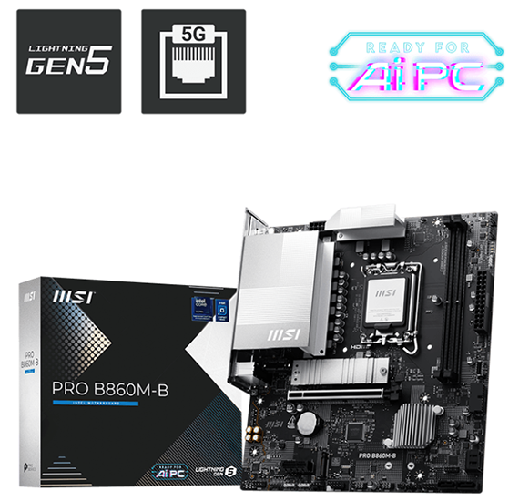 MSI微星 PRO B860M-B (mATX/DDR5*2/1H1DP/M.2*2/Realtek 8126 5Gbps LAN/6+1+1+1相)