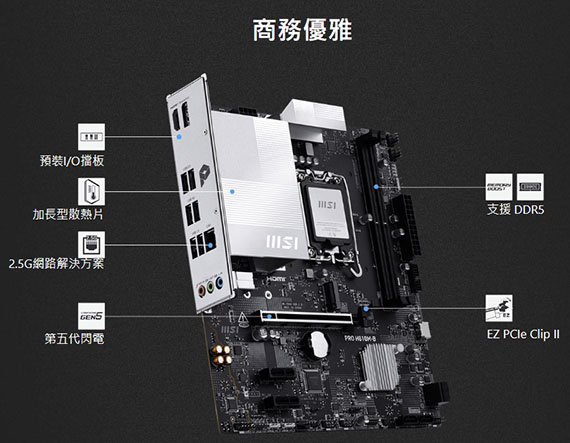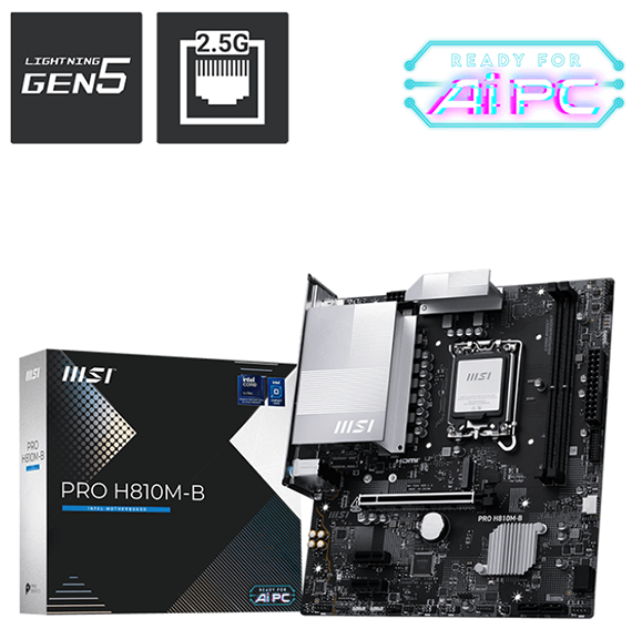 MSI微星 PRO H810M-B (mATX/DDR5*2/1H1DP/M.2*2/Realtek 8126 5Gbps LAN/6+1+1+1相)