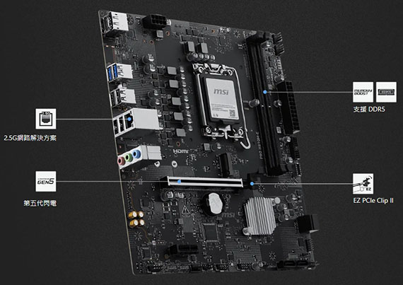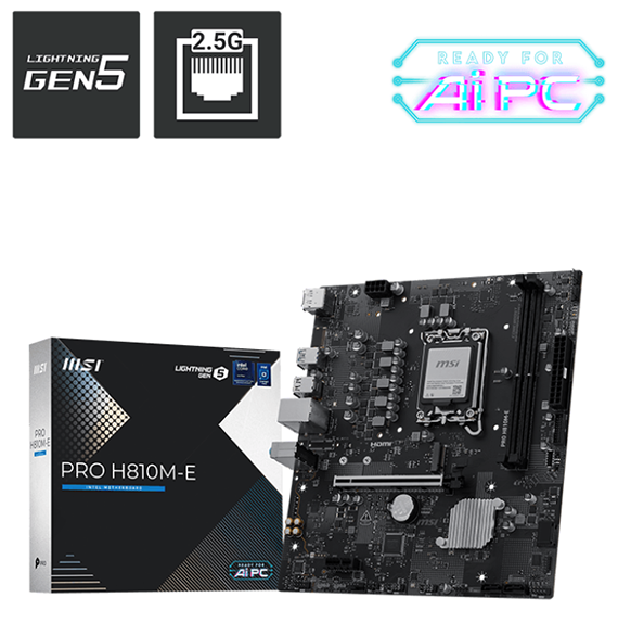 MSI微星 PRO H810M-E (mATX/DDR5*2/1H1DP/M.2*2/Realtek 8126 5Gbps LAN/4+1+1+1相)