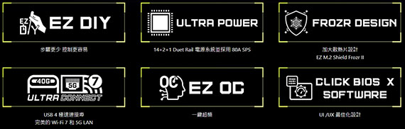 AMD X870E,DDR5*4(MAX.256GB),8400-5600(OC)MT/s、5600-4800(JEDEC)MT/s,PCI-E x16 slot*3,M.2*4,SATA 6G*4, HDMI2.1*1,Type-C DisplayPort*2,Realtek 8126 5G LAN,Wi-Fi 7,藍牙5.4,Realtek ALC4080 Codec,USB 2.0*8,Type A*9, Type C*4,ATX,Socket AM5,需搭配CPU晶片才能使用內顯功能