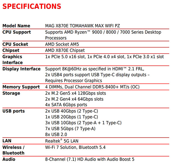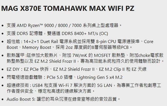 MAG X870E TOMAHAWK MAX WIFI PZ |