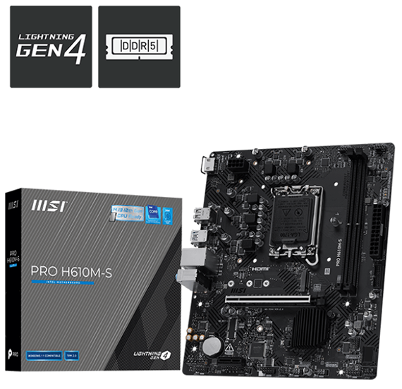 MSI微星 PRO H610M-S DDR5 (m-ATX/DDR4*2/1H/Realtek 1G/3+1+1相)