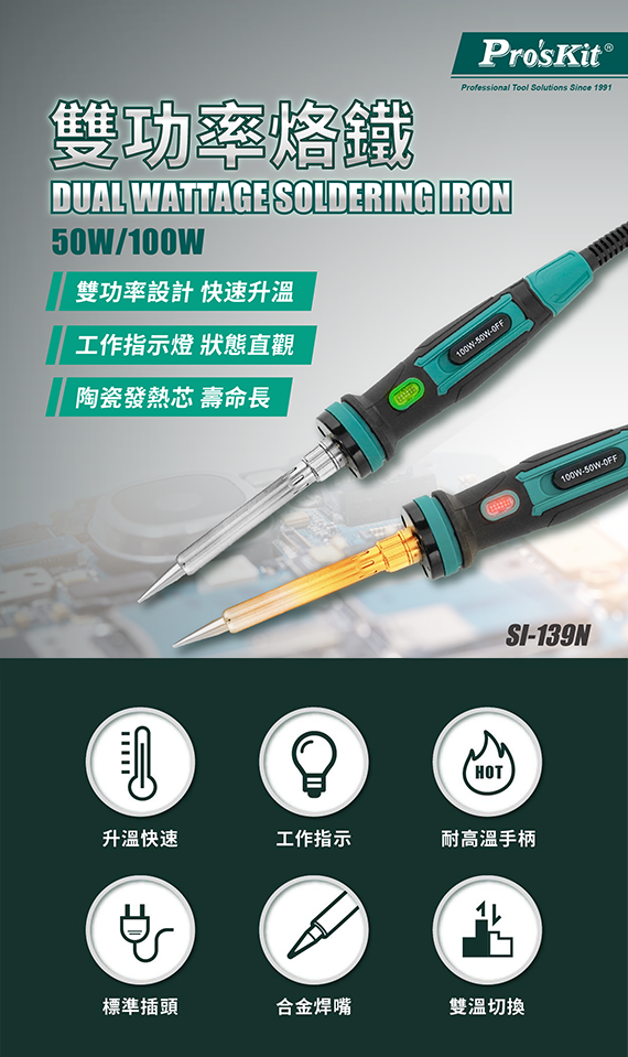 ProsKit寶工 SI-139NA 50W/100W 雙功率烙鐵