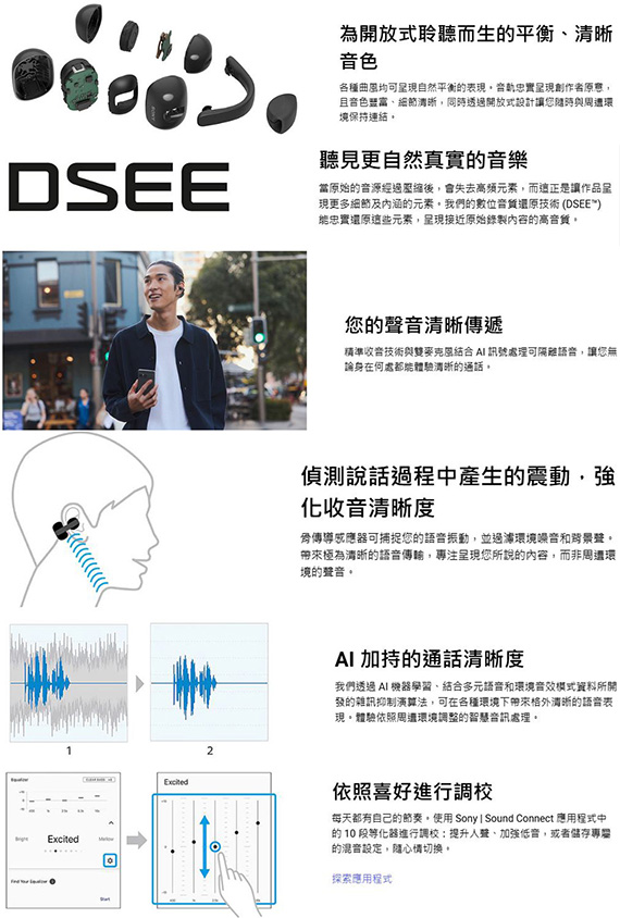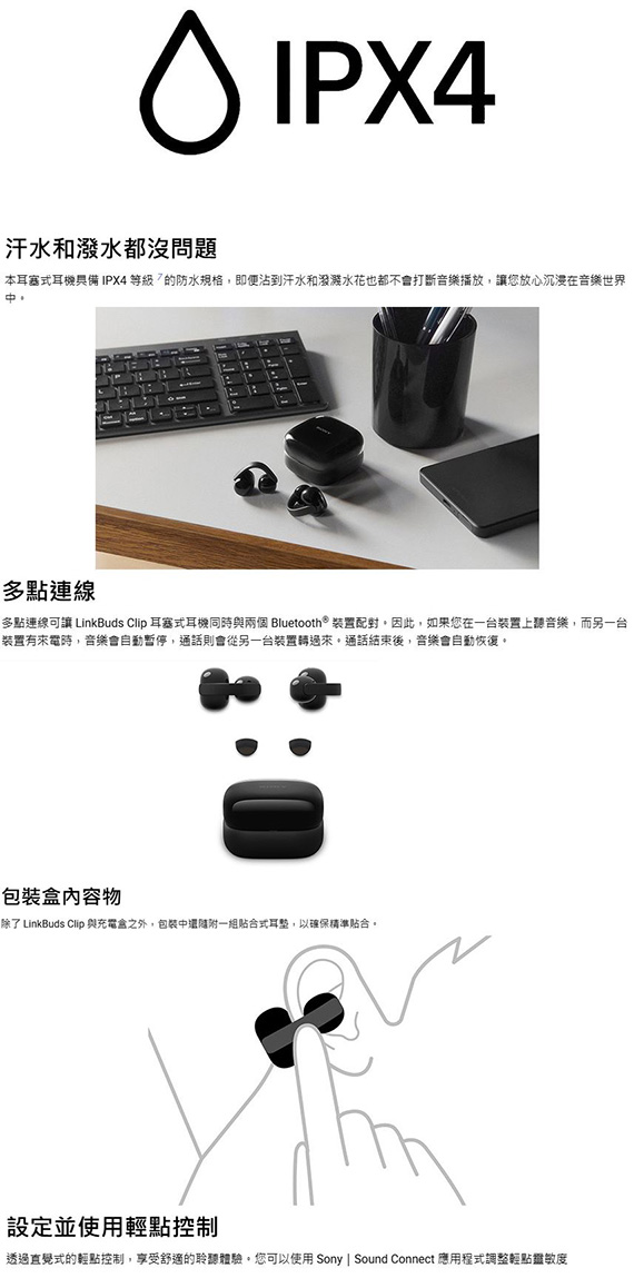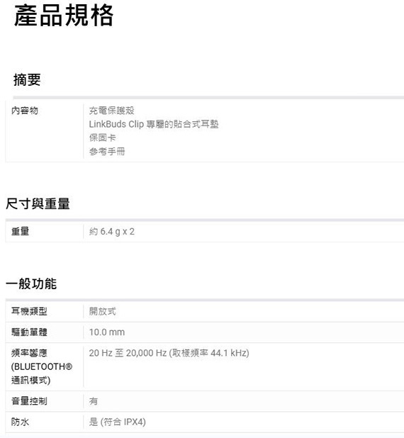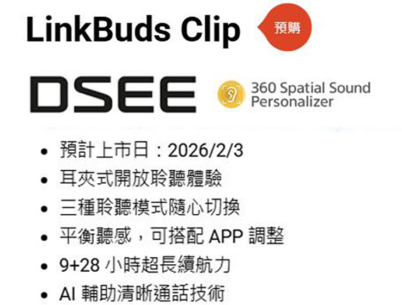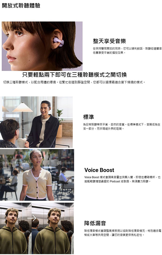 耳夾式耳機,驅動單元10.0mm,藍牙5.3,9小時電池續航力,電池續航力(待機時間)長達15小時,耳夾式開放聆聽體驗,三種聆聽模式隨心切換,平衡聽感,可搭配 APP 調整,9+28小時超長續航力,AI輔助清晰通話技術,降低漏音,輕巧且穩固,自然融入生活,外殼結構依然有助於降低漏音,防汗水和潑水 NCC認證碼: CCAO25LP0760T7 BSMI認證碼: R33021