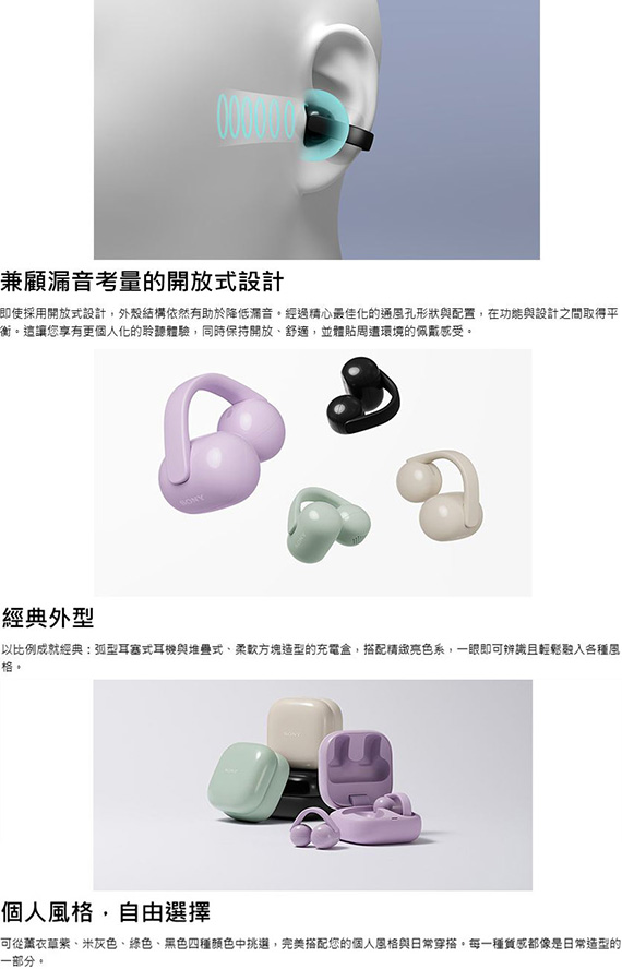 SONY新力 WF-LC900/C 米灰色 LinkBuds Clip 開放式 真無線 耳夾式耳機麥克風