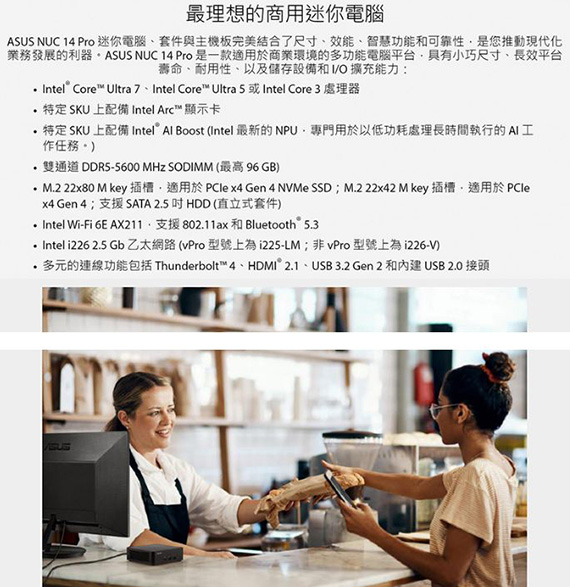 ASUS華碩 NUC 14 PRO RNUC14RVHU5068A9I (U5-125H/16G/512G/Home)