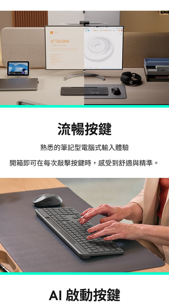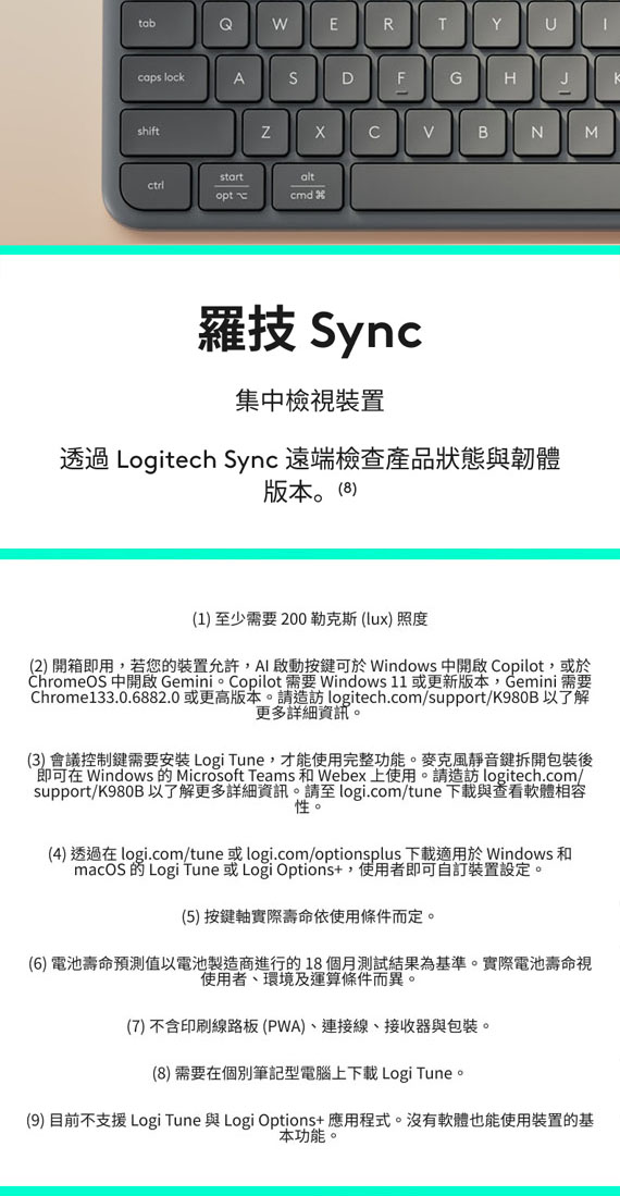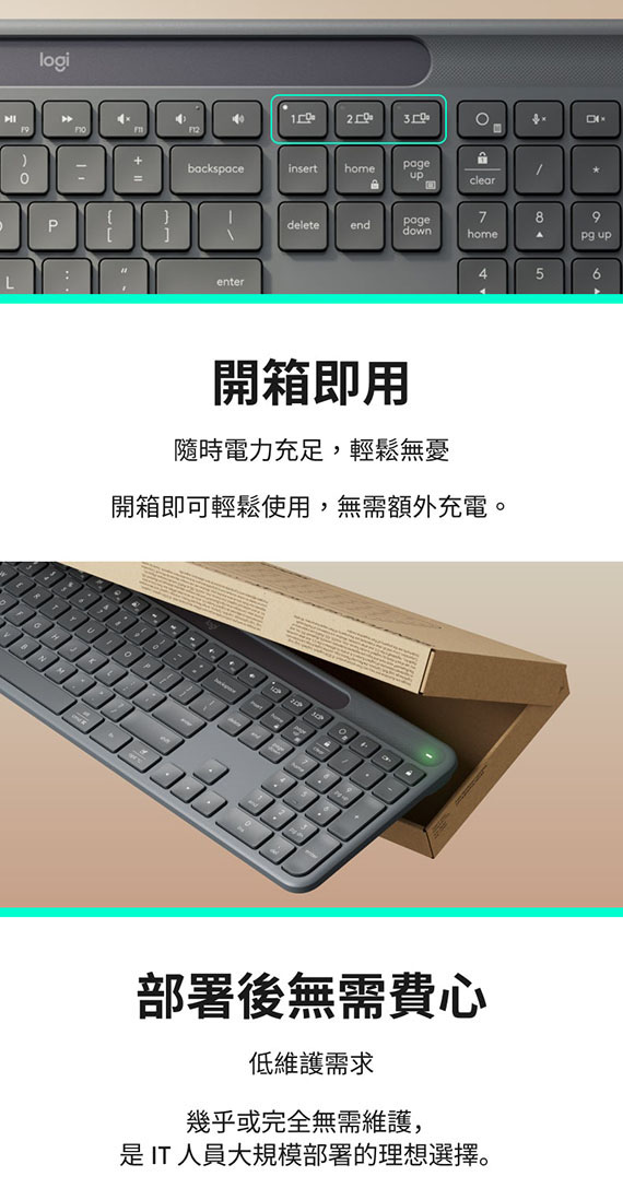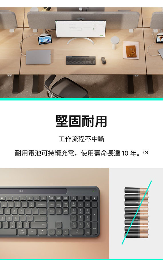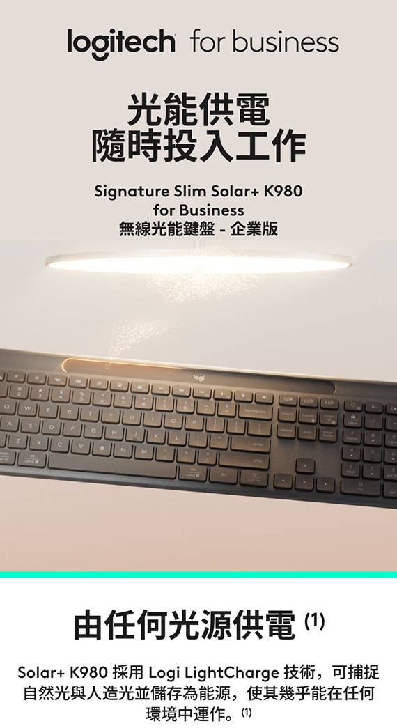 Logitech羅技 Signature Slim Solar + K980 for Business 光能無線鍵盤-企業版