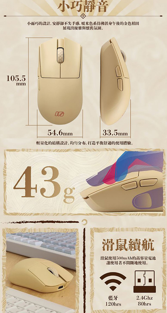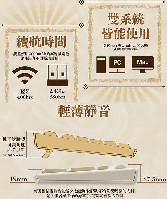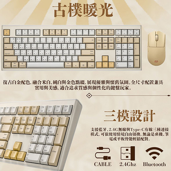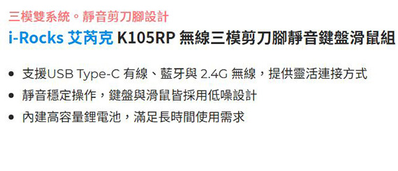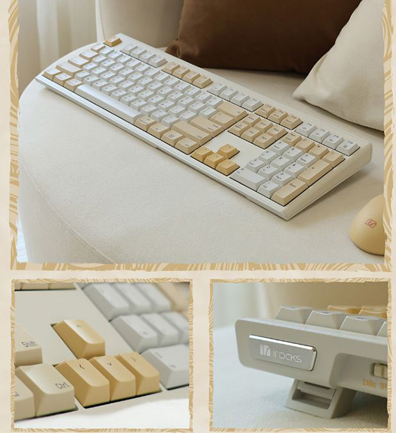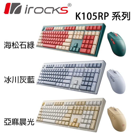 iRocks艾芮克 K105RP 亞麻晨光 無線三模藍牙剪刀腳 靜音鍵盤滑鼠組