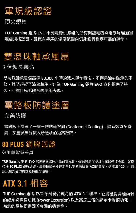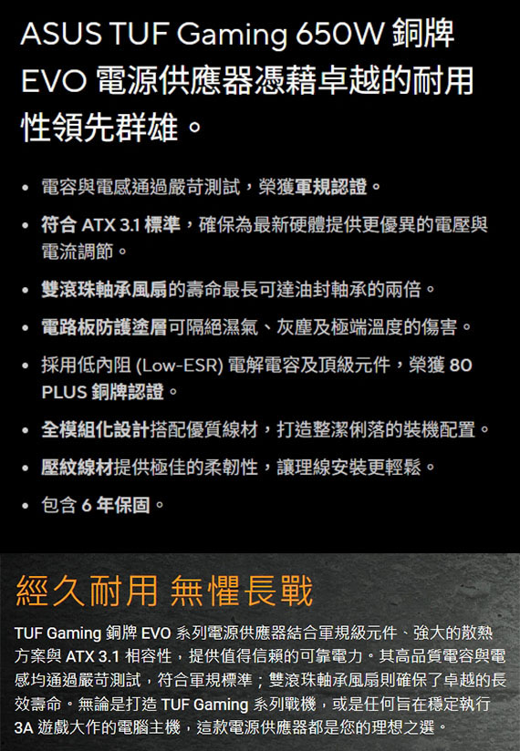 ASUS華碩 650W TUF-GAMING-650B-EVO 80PLUS銅牌 全模組化 ATX3.1 電源供應器 (90YE00D6-B0TA00)