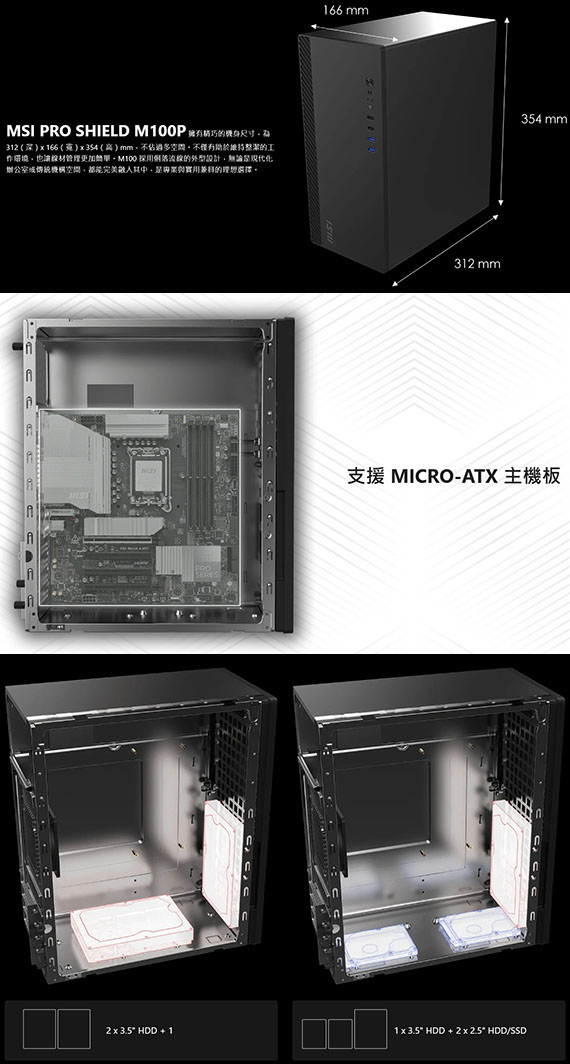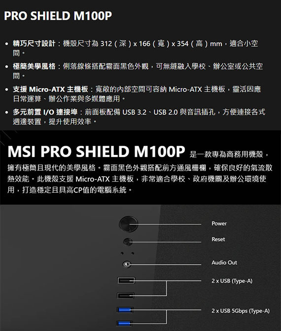 MSI微星 PRO SHIELD M100P 金屬側板 M-ATX機殼