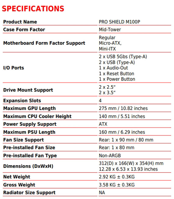 3.5吋*2,2.5吋*2,適用主機板:Micro-ATX、Mini-ITX,PCI擴充槽*4,支援CPU散熱限高140mm,顯卡GPU限長275mm,電源供應器PSU空間160mm,支援風扇(無標示內建即選購):後部90mm*1,USB Type-A 5Gbps*2,USB Type-A *2,音訊*1,重設按鈕*1,電源按鈕*1,一款專為商務用機殼,極簡美學風格,良好的氣流散熱效能,支援 Micro-ATX主機板,不佔空間,俐落流線的外型設計,尺寸312x166x354mm,2年保固