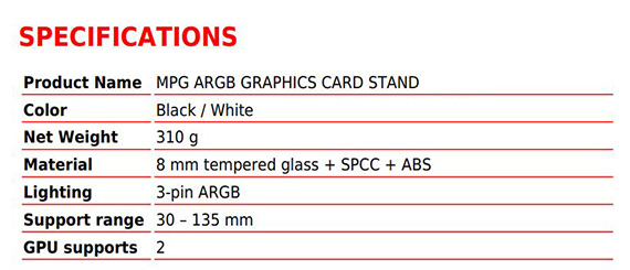MPG ARGB GRAPHICS CARD STAND |