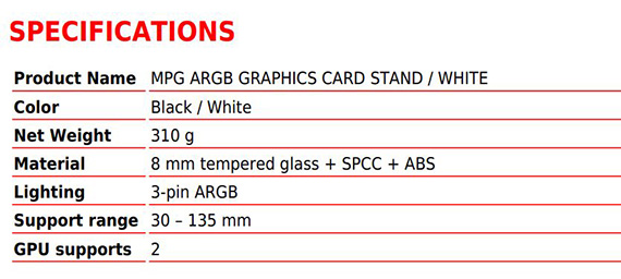 MPG ARGB GRAPHICS CARD STAND |