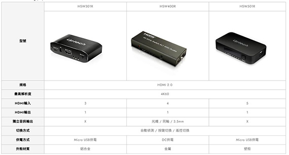 UPMOST登昌恆 Uptech HSW400R 4進1出 4K2K HDMI影音切換器 (客訂)