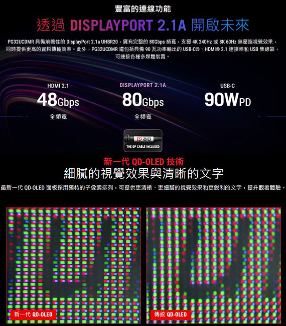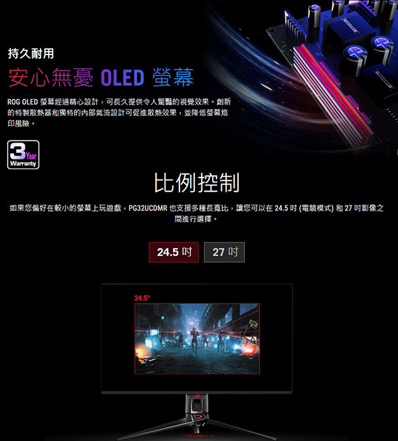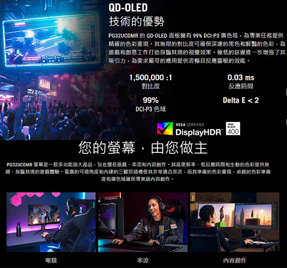 ASUS華碩 ROG Swift OLED PG32UCDMR 32型 16:9 31.5吋 4K 240Hz電競螢幕 (OLED/0.03ms/2H1DP1Type-C/FreeSync Premium Pro)