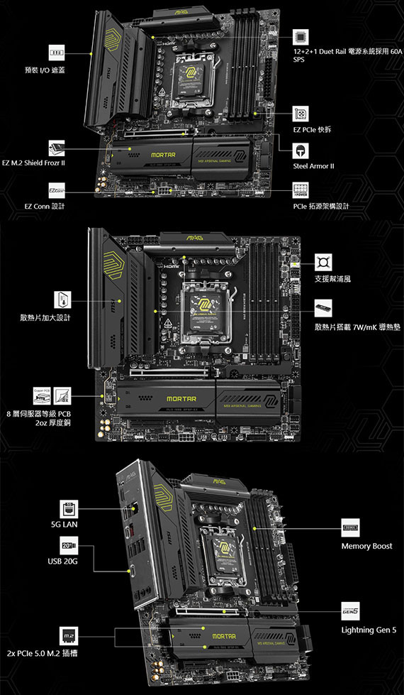 MSI微星 MAG B850M MORTAR (m-ATX/DDR5*4/1H/M.2*3/Realtek 8126-VB 5G LAN/12+2+1相)