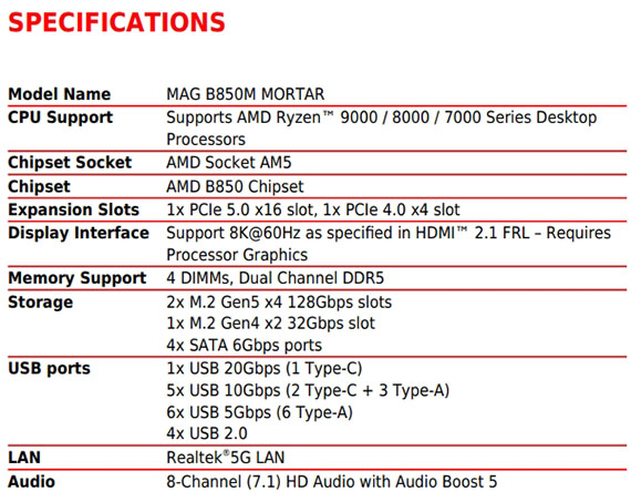 MAG B850M MORTAR |