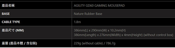 適用於於雷射和光學電競滑鼠、具六種可變換的燈光顏色、直觀的燈光效果控制、兼具防滑和減震效果的橡膠底座、尺寸:386x290x10.2mm