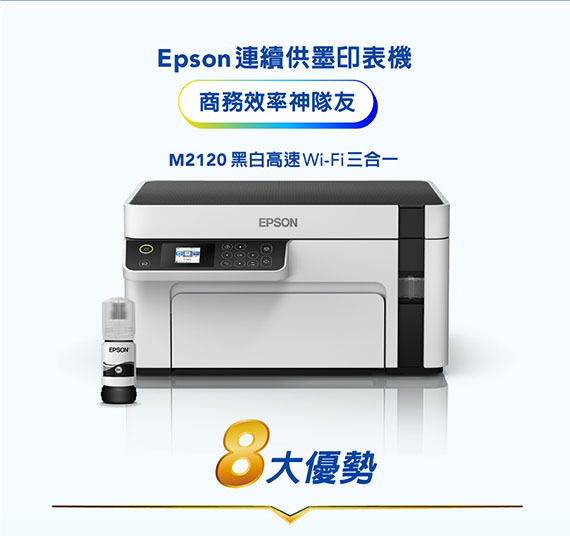 EPSON愛普生 M2120 黑白噴墨高速3合1Wi-Fi連續供墨複合機
