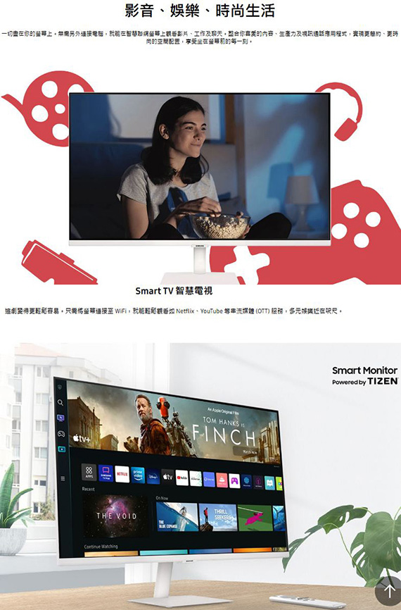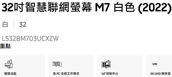 SAMSUNG三星 S32BM703UC/LS32BM703UCXZW M7智慧聯網 白色 32型 16:9 31.5吋 4K螢幕 (VA/4ms/2HType-C/喇叭/WiFi+藍牙)