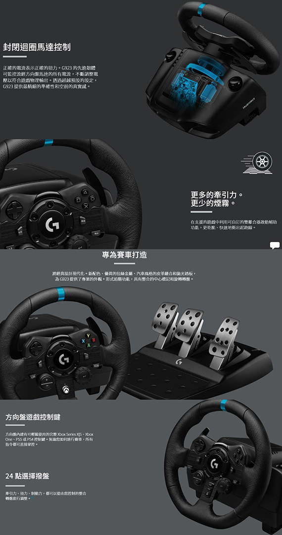 Logitech羅技 G923 TRUEFORCE SIM RACING WHEEL 模擬賽車方向盤+踏板 適用:XBOX,PLAYSTATION,PC