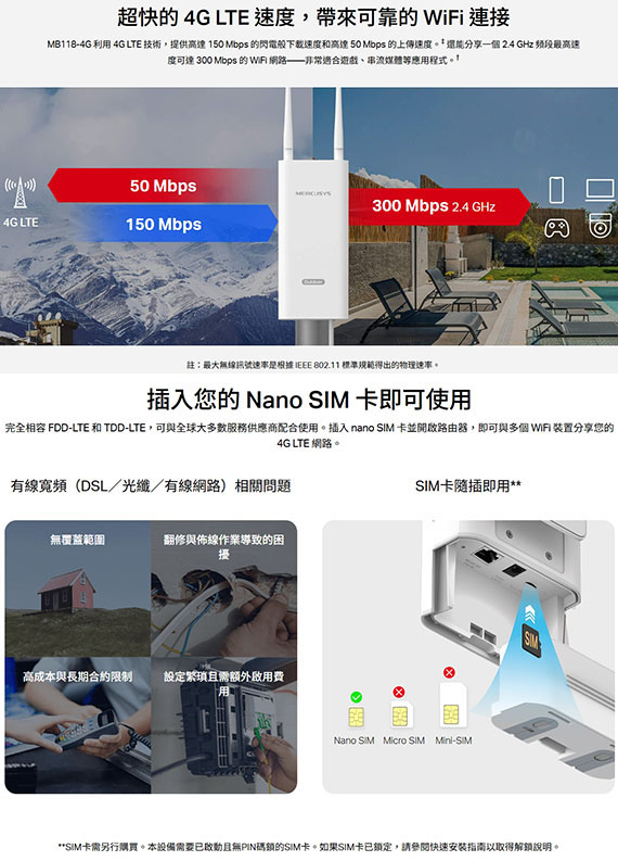 Mercusys水星 MB118-4G 300Mbps 無線 N 4G LTE 路由器