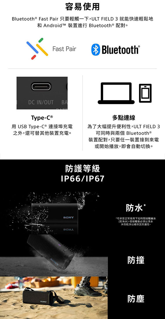 SONY新力 SRS-ULT30/B 羽黑 便攜式防水藍牙喇叭