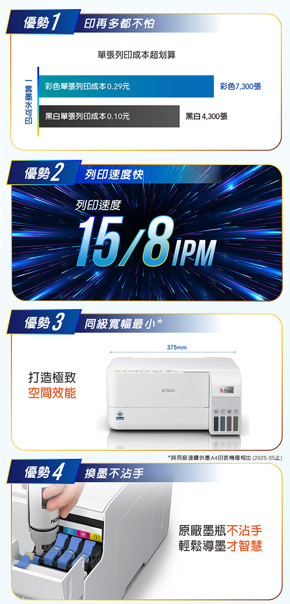 購買主機享1年保固;主機加購一組墨水升級2年保固、加購兩組墨水升級3年保固 |