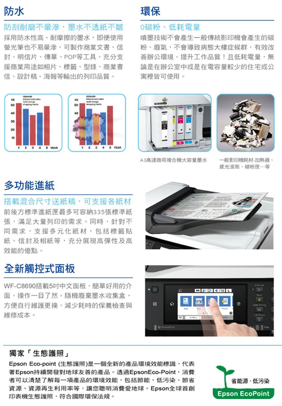 EPSON愛普生 WorkForce Pro WF-C8690 彩色噴墨多功能複合機 A3