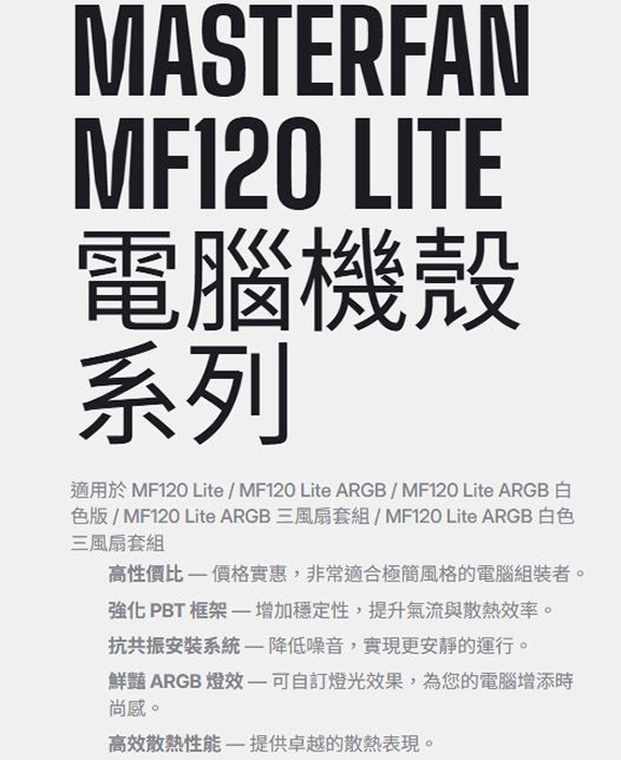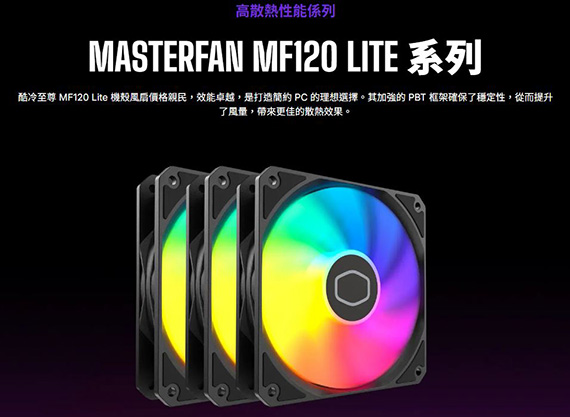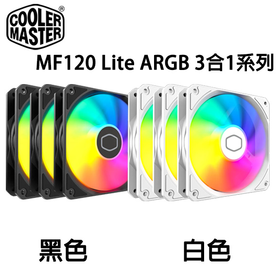 CoolerMaster MasterFan MF120 Lite ARGB 黑色 12公分風扇 3合1組合(MFW-B2DN-173PA-R1)