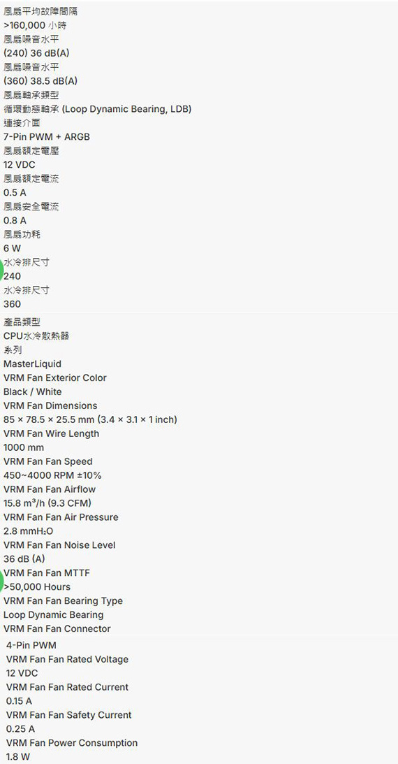 CoolerMaster MasterLiquid 360 Atmos II VRM Fan ARGB 白色 CPU水冷散熱器 (MLX-D36M-A25SZ-VW)