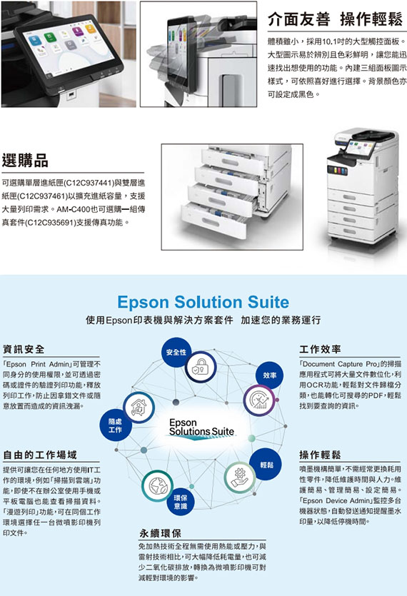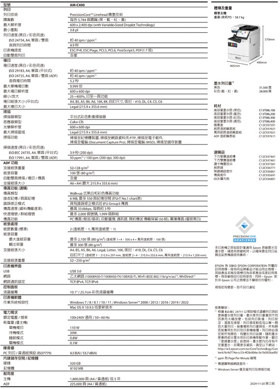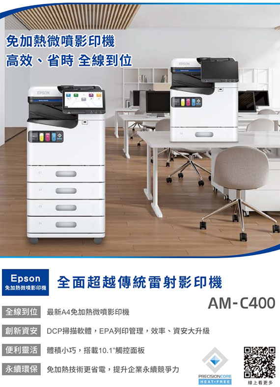 EPSON愛普生 AM-C400 免加熱 彩色噴墨多功能事務機 (C11CJ93506)