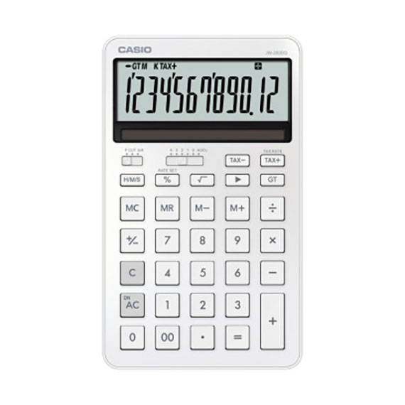 12位數,傾斜式 LCD 表面,輕巧桌上型,太陽能板重新再定義,多層次構造,基本計算,時間計算,利潤百分比,根號計算,稅金計算,尺寸(深*寬*高)182*109*20.4 mm,雙電力(太陽能/電池) BSMI認證碼: D33C78